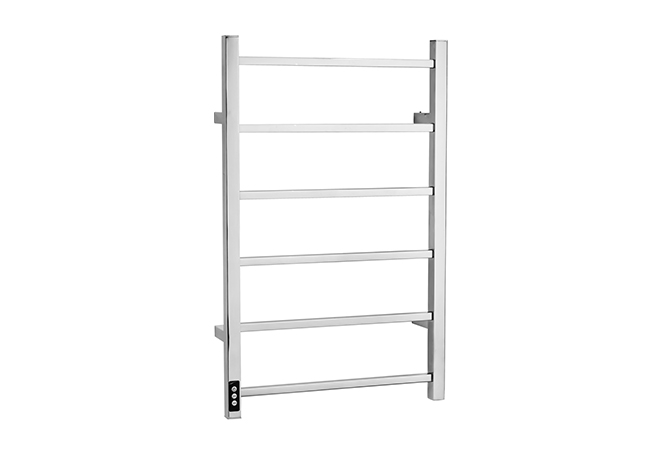 6桿時(shí)控開關(guān)電熱毛巾架 6 bar time switch heated towel rail 材質(zhì)Material:SS201/SS304 功率Power:220V/90W 表面Surface:Mirror Polished 鏡面拋光 尺寸Size:500*110*800mm 包裝Ctn size:520*60*830mm