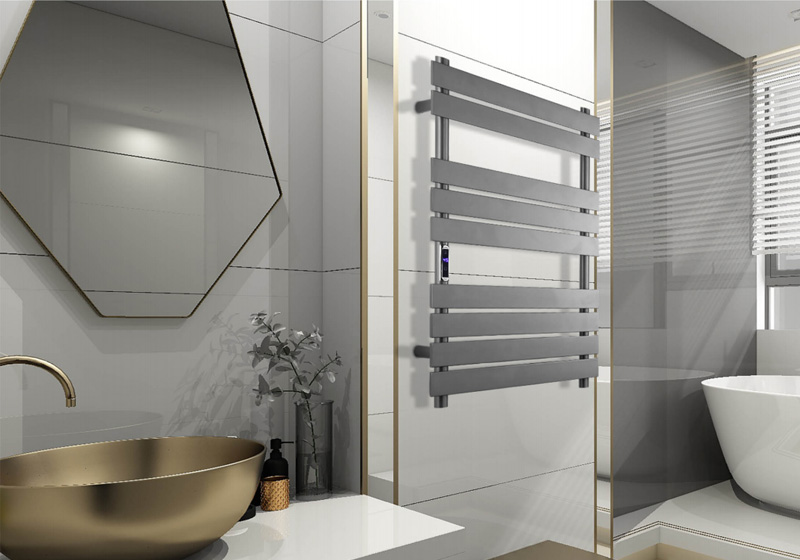 9桿時(shí)控溫控開關(guān)電熱毛巾架 9 bar time and temperature switch hea ed towel rail 材質(zhì)Material:SS201/SS304 功率Power:220V/190W 表面Surface:Gun Black Painted 槍黑噴塑 尺寸Size:560*120*725mm 包裝Ctn size:580*70*760mm