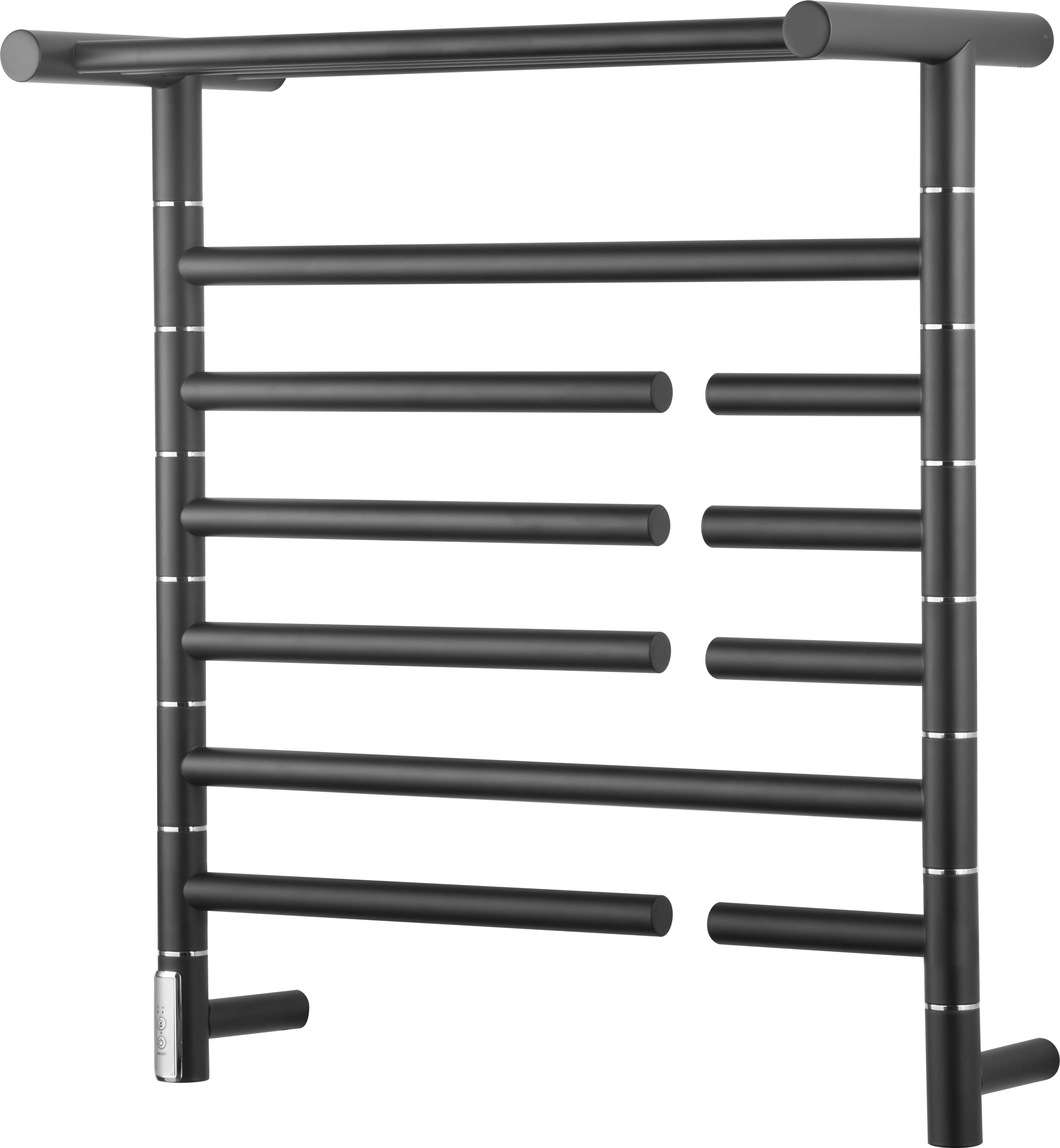 10桿時控開關電熱毛巾架 10 bar time switch heated towel rail 材質Material:SS201/SS304 功率Power:220V/130W 表面Surface:Black Painted 黑色噴塑 尺寸Size:600*250*654mm 包裝Ctn size:620*270*690mm